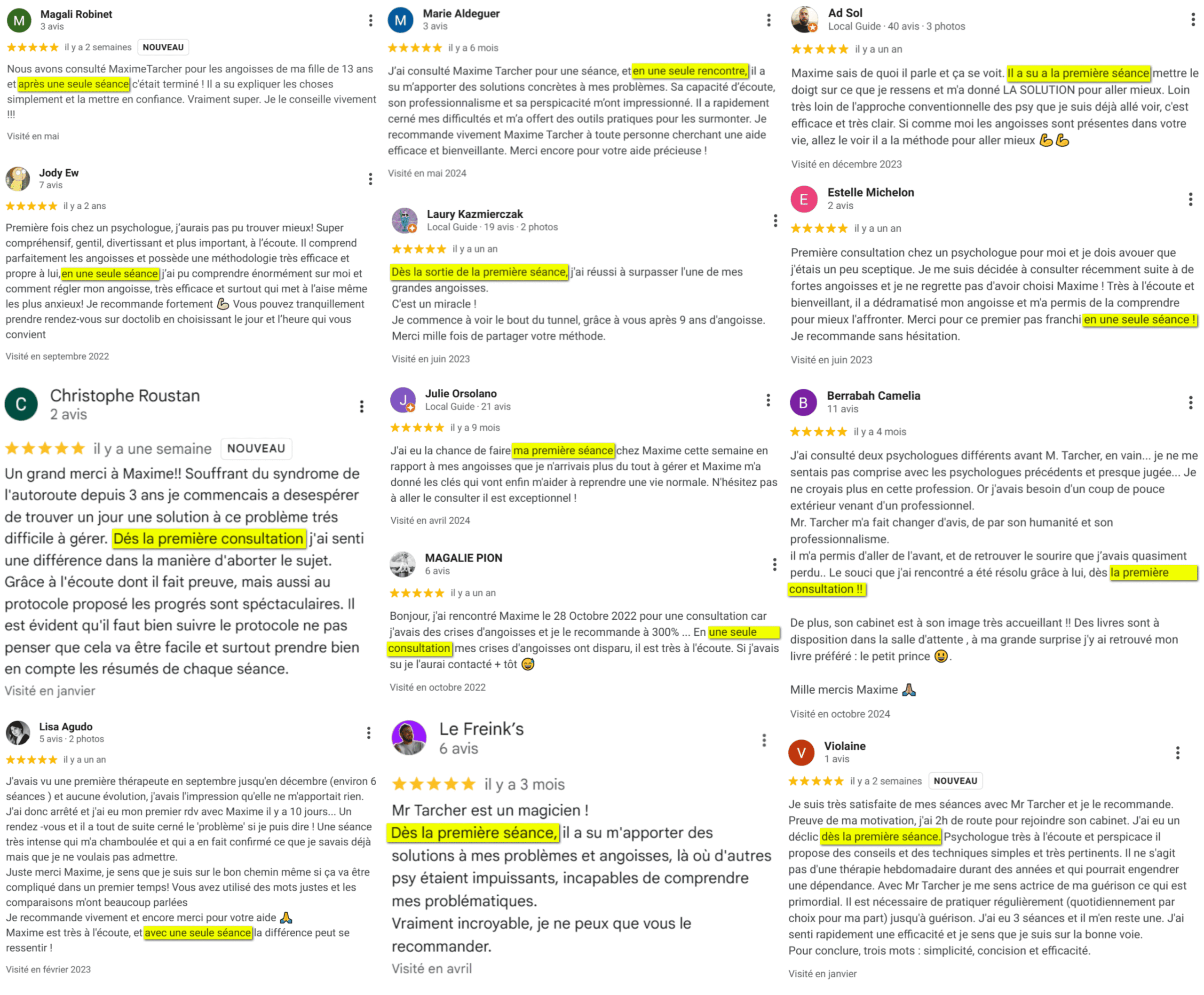 +80 témoignages disponibles sur Google avec les mots clés « maxime tarcher »